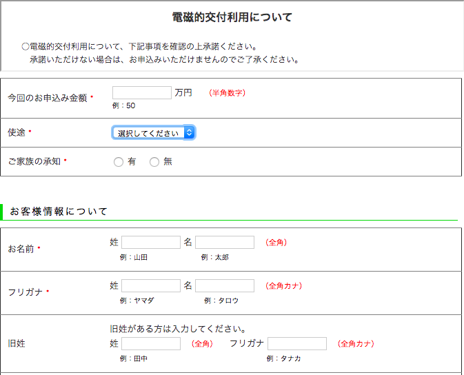 するとこのような新規申し込みフォームが出てきます。
