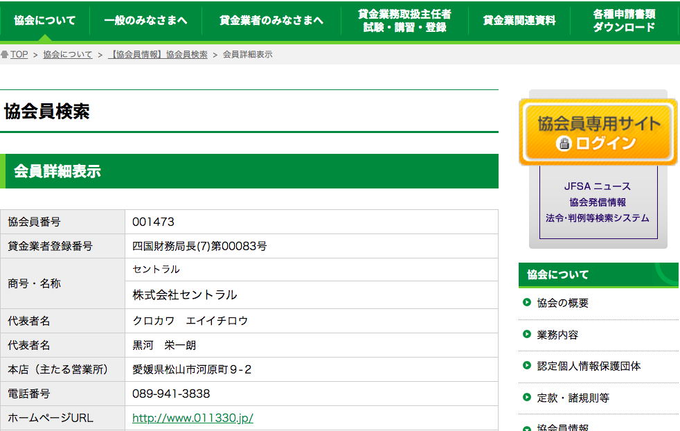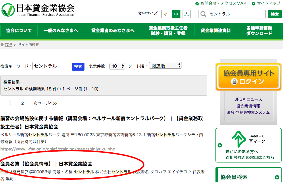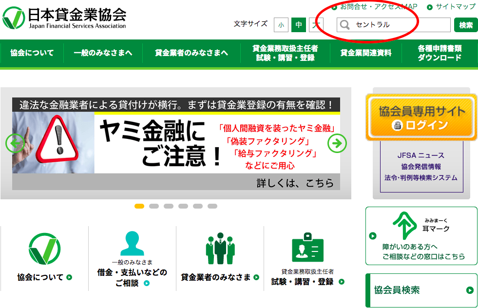 セントラルが闇金ではない理由①:日本貸金業協会に加盟している