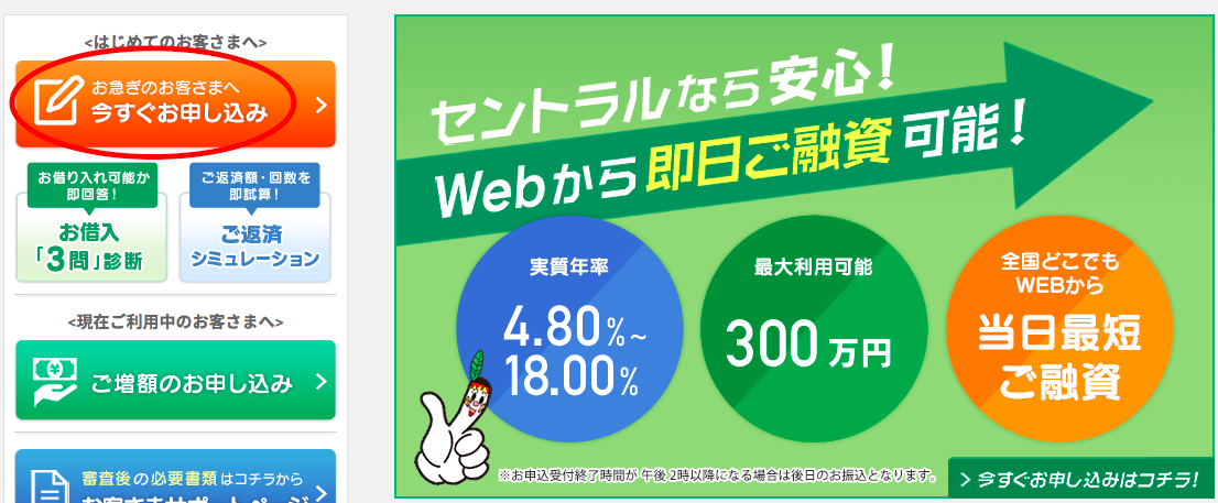 お金に困っている人が一番嬉しいポイントを抑えた消費者金融なので、キャッシングを検討している人はまずセントラルに申し込んでみてはいかがでしょうか。
