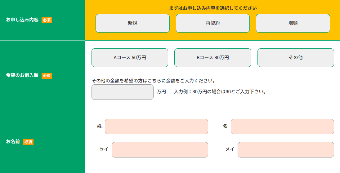 初めての方は「新規」にチェックを入れて希望額を入力します。