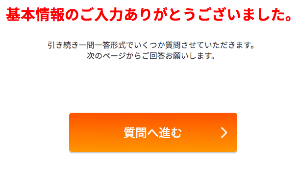 ここからは順番に質問に答えていき、最後に最終確認をしてボタンを押したら申し込み完了です。
