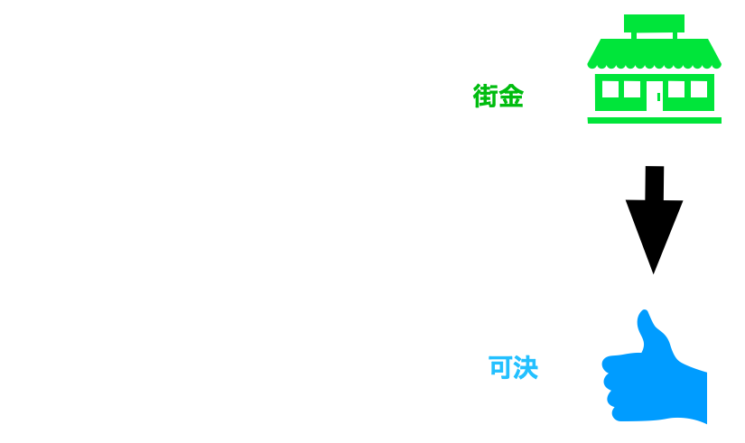 街金は大手から審査落ちで流れてきたお客様が多く、その救済措置として審査方法を会社独自で設けているのでブラックで借入できなかった人に対して前向きに融資できるよう働きかけてくれるのです。